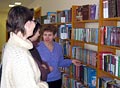 Заведующая Константиновской сельской библиотекой Е.Н. Астахова показывает новые поступления книги, видеоматериалы, CD-ROM московским специалистам, благодаря усилиям которых, собственно говоря, и был сформирован этот замечательный фонд. |