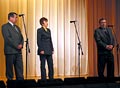 Работников культуры, библиотекарей, читателей, население сельского округа приветствуют (справа налево) заместитель Главы администрации Рязанской области В.Н. Трушин, начальник отдела культуры администрации Рыбновского района Н.С. Анисимова, заместитель главы администрации Рыбновского района В.С. Кабанов. |
